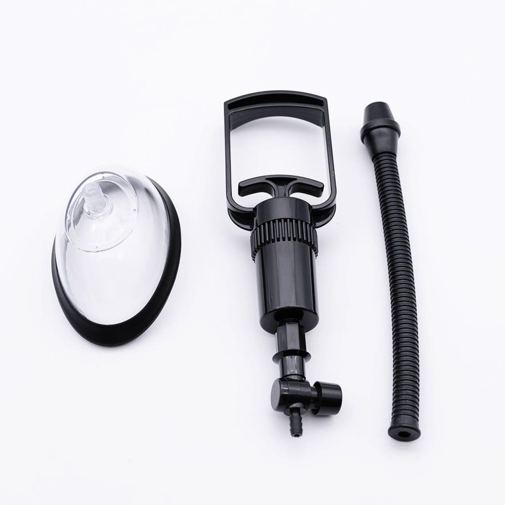 Eine andere Art von Muschi-Pumpe ist die Scherengriffpumpe. Sie besteht aus einem Griff, der zusammengedrückt wird, um den Druck im Inneren zu erzeugen. Diese Art von Unterdruckpumpe erfordert etwas mehr Aufwand, bietet jedoch eine größere Saugleistung und ermöglicht eine präzisere Einstellung des Unterdrucks.