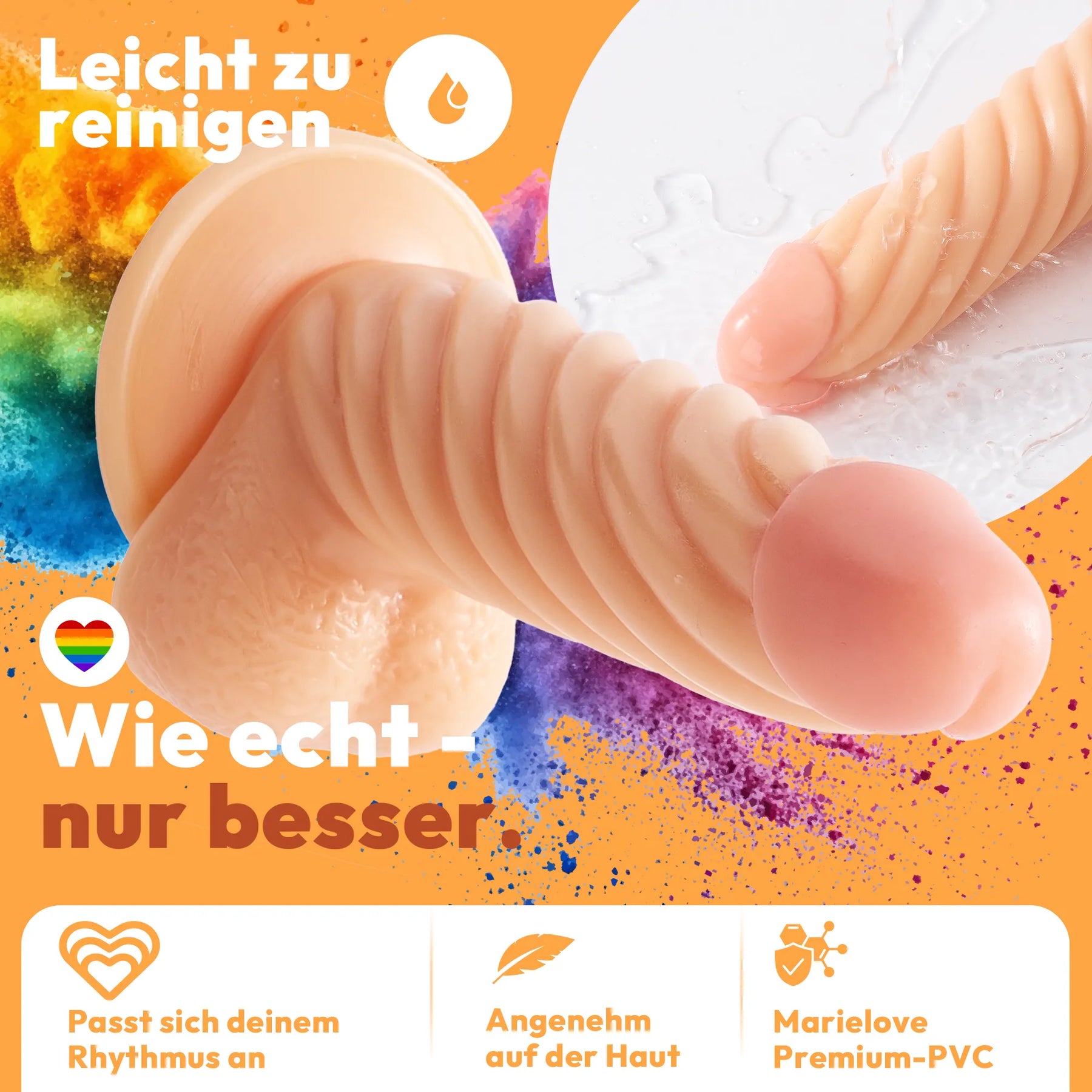 Die feste und dennoch unglaublich biegsame Penisnachbildung aus geruchsneutralem, gefühlsechten, phthalatfreiem PVC ist extrem gleitfreudig, wasserfest und somit auch hervorragend einfach zu reinigen.