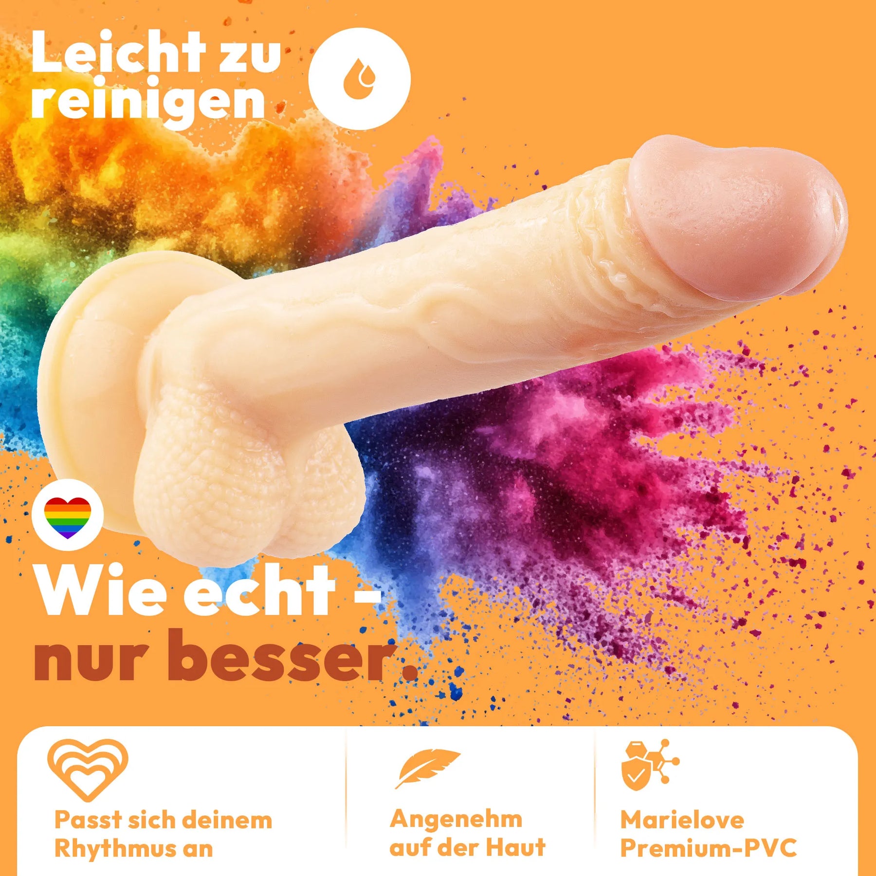 Die feste und dennoch unglaublich biegsame Penisnachbildung aus geruchsneutralem, gefühlsechten, phthalatfreiem PVC ist extrem gleitfreudig, wasserfest und somit auch hervorragend einfach zu reinigen.