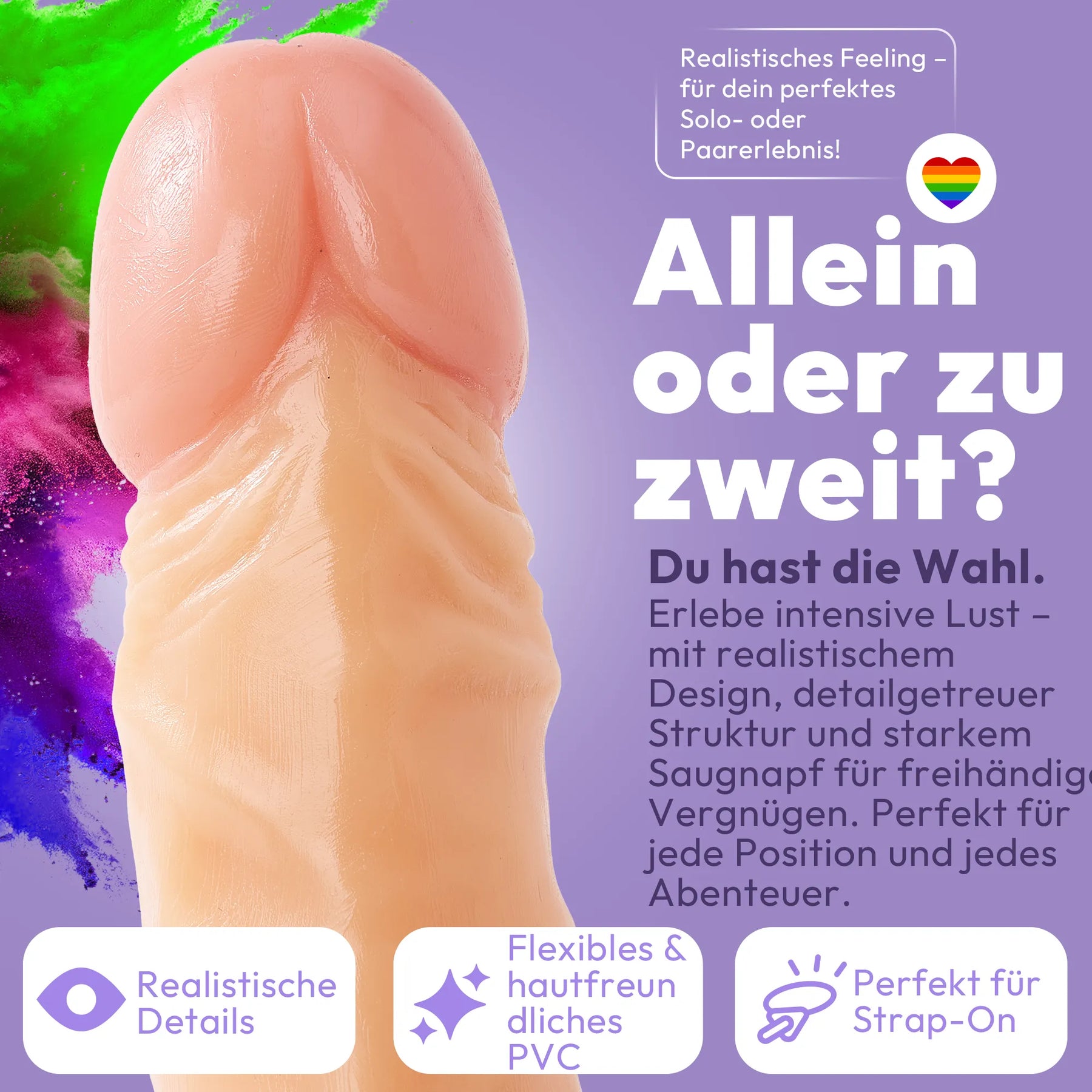 Durch den Saugnapf hält der Dildo an allen glatten Flächen und lädt zu Spielchen aller Art ein.