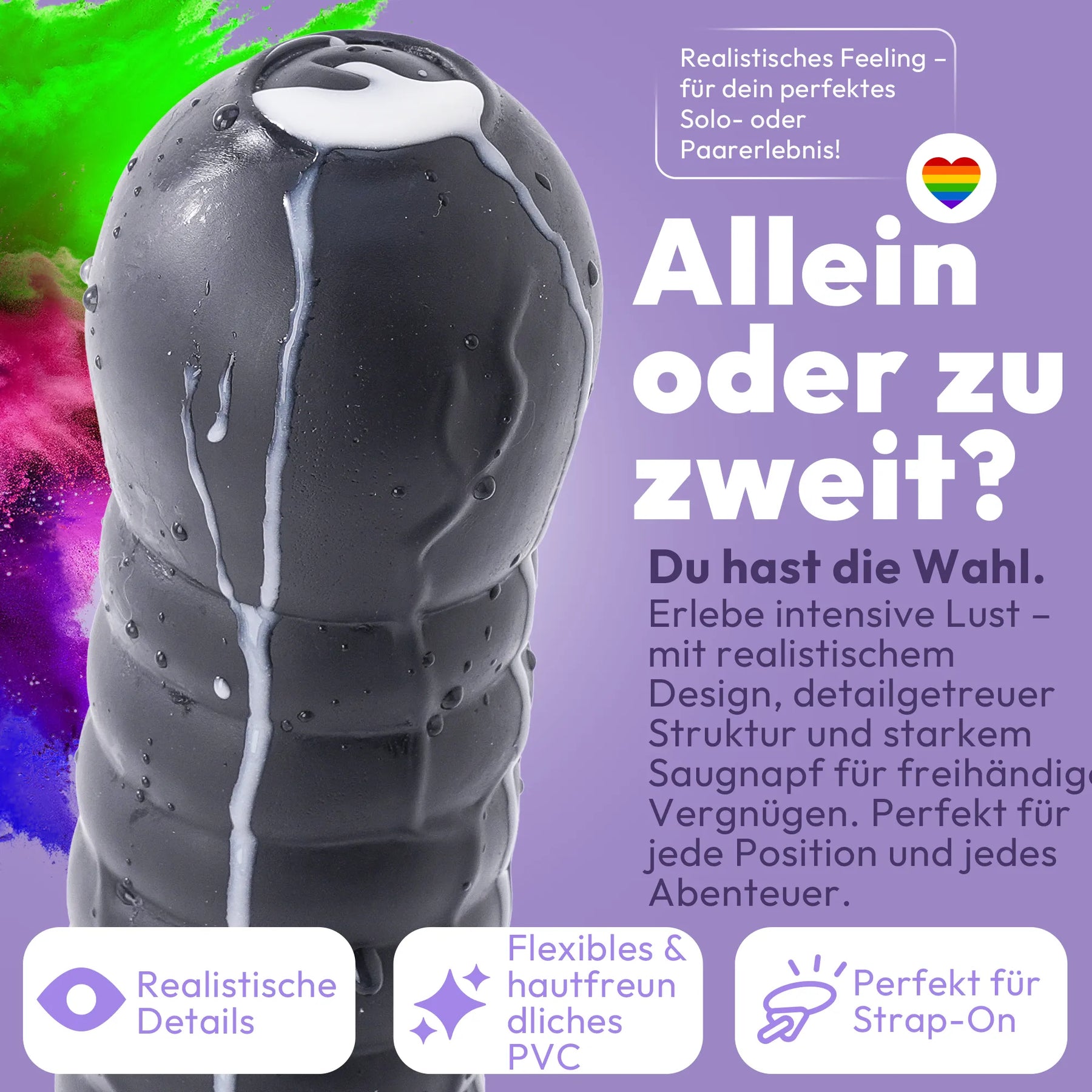 Durch den Saugnapf hält der Dildo an allen glatten Flächen und lädt zu Spielchen aller Art ein.