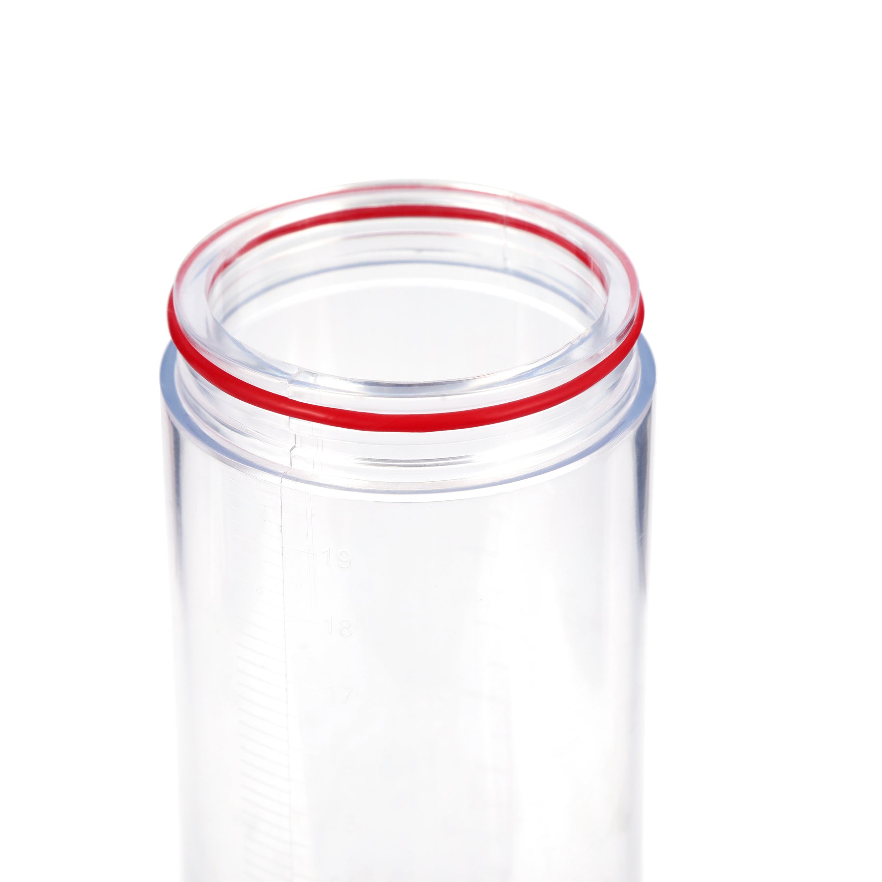 - Transparenter Zylinder mit metrischen Maßeinheiten.
