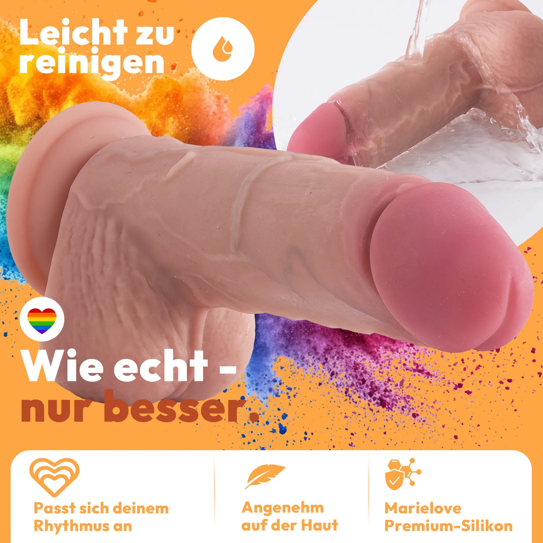 Die feste und dennoch unglaublich biegsame Penisnachbildung aus geruchsneutralem, gefühlsechten Vollsilikon ist extrem gleitfreudig, wasserfest und somit auch hervorragend einfach zu reinigen.
