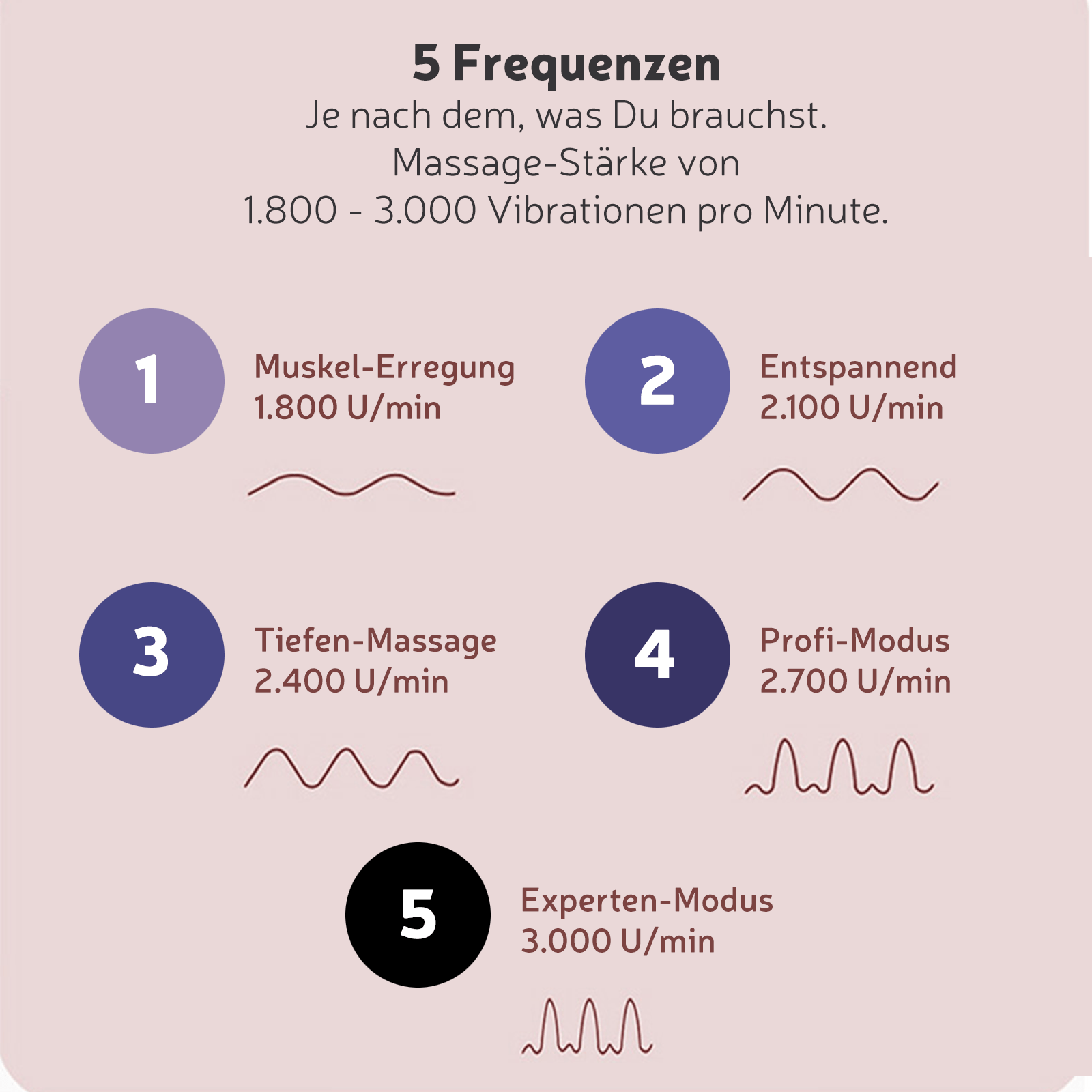Durch das LCD Display kannst du zwischen 5 verschiedenen Modi wählen und die Frequenz bis zu 3000 U/min hochdrehen.