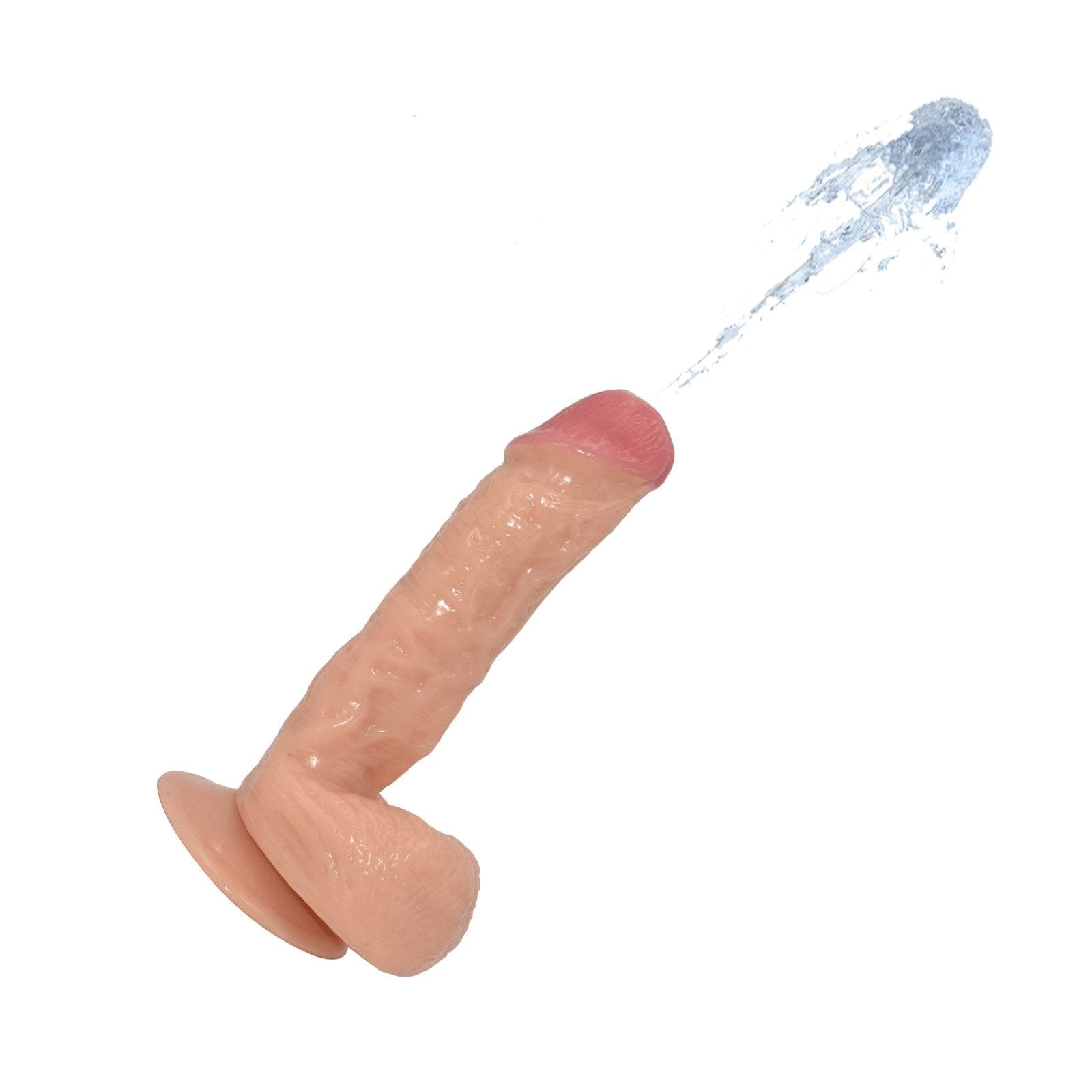 Der Dildo hat eine geile Spritzfunktion. Durch Druck auf den Hoden erzeugst du Unterdruck und saugst den Saft ein. Drückst du wieder auf den Hoden spritzt alles heraus.